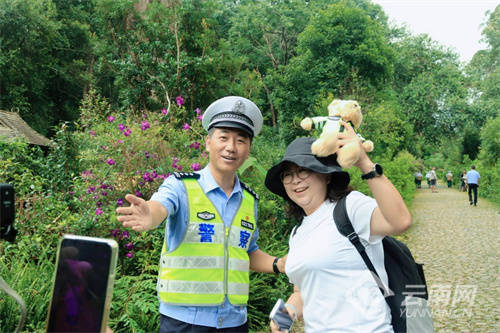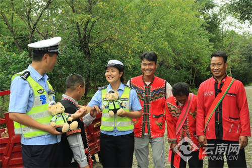 景迈山道路弯多且急,村民的摩托车和游客自驾车辆共享有限的通行空间。为此,宣传民警向游客们耐心讲述山路行车注意事项,并邀请村民充当“演员”,在交通安全情景演绎中了解三轮车违法载人、无证驾驶、未成年人驾驶机动车等违法行为存在的风险隐患。“第一次‘演戏’,很有意思,我回去会和村里人说今天学到的交通规则!”村民郭富成说。